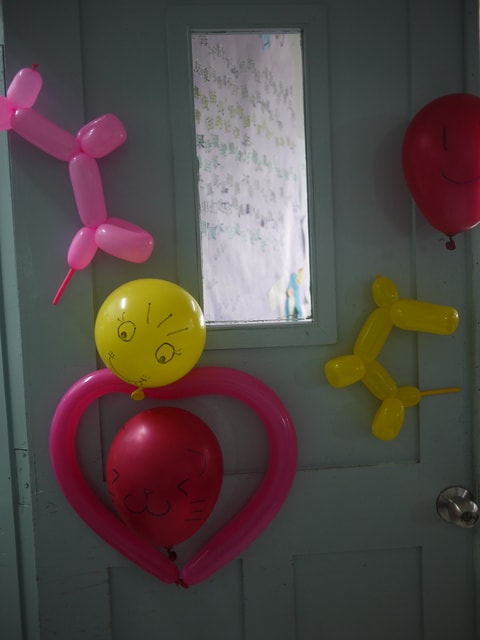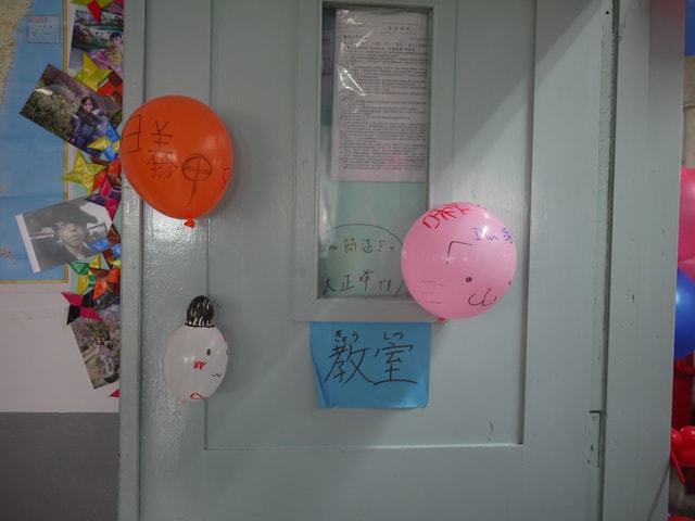 在右手方的入口處附近,孩子們很貼心的在氣球上畫上班級箭頭