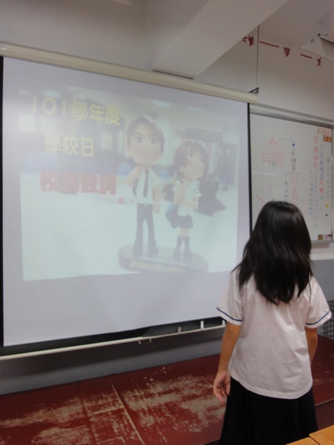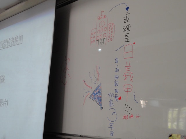 一開始先是校長致詞,螢幕一拉下來~ 整個白板就去掉大半啦!!
