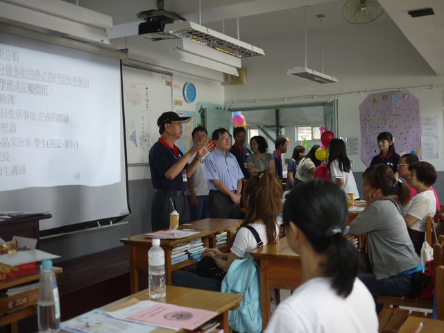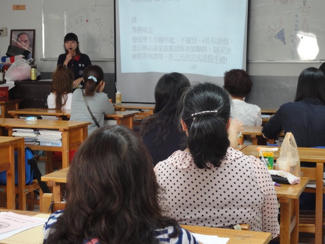 家長會進行時,校長主任到我們班上和家長們打招呼