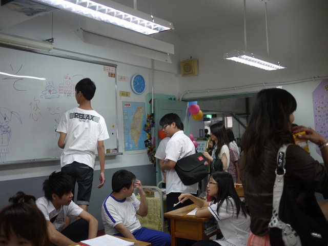 所以沒事的學生們就開始亂畫黑板聊起來啦!! (老師明明自己也和家長聊起來了