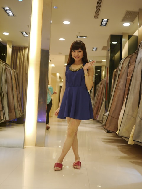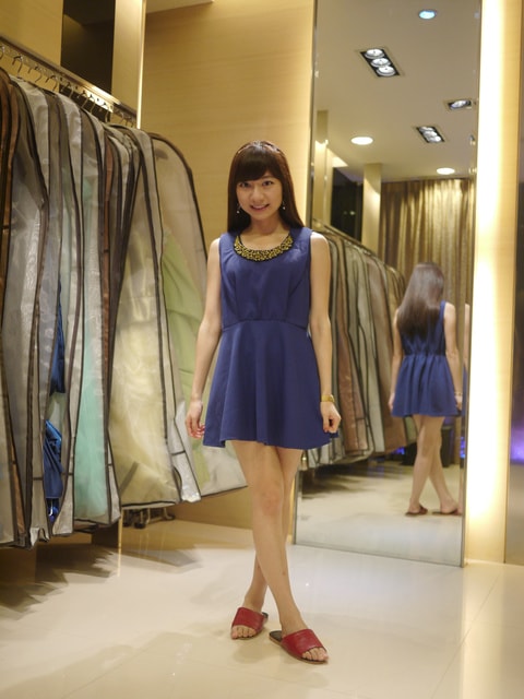 蒂芬妮綠的洋裝,胸前的灰色感覺有點突兀,拍攝效果灰色並不會太明顯
