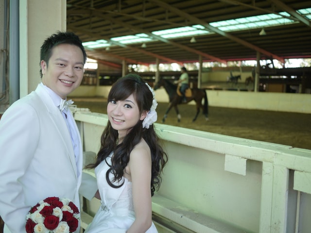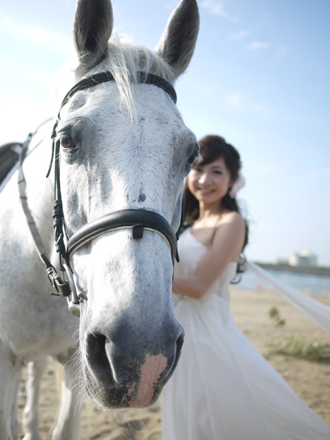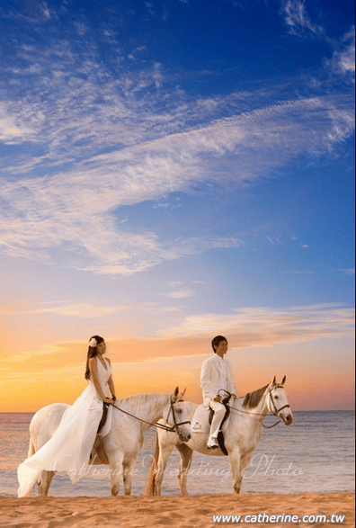 馬場大約步行3mins之內就可抵達海邊, 除了白馬外~還有棕馬可供新人選擇