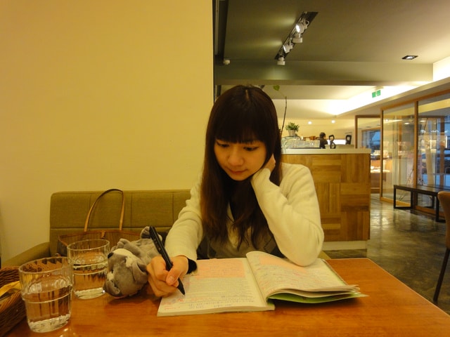 週末假日,小杰有時也會陪我去咖啡店看看書