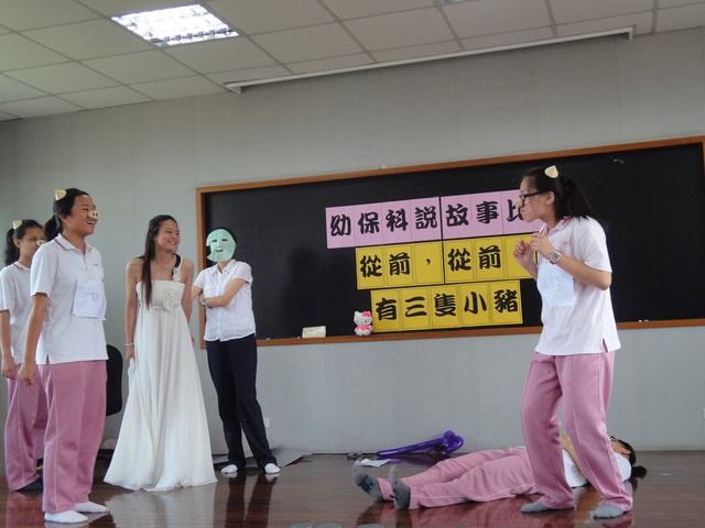 記得四五年前在學校教書時,幼保科說故事比賽時.台下可都是幼稚園的孩子們
