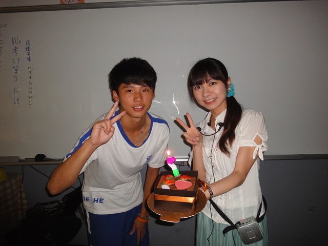 同學突然把全班電燈關掉,然後由我靦腆的小老師緩緩拿出生日蛋糕走向台前