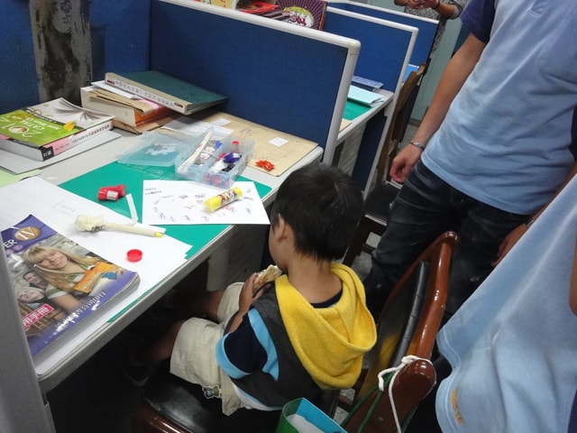若我有空堂,就想把他抱到我的座位旁畫畫或是蓋印章