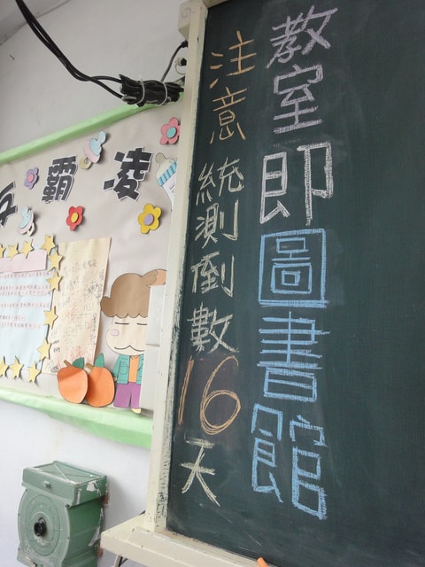 乖巧的幼保科學生主動在黑板上寫上 教室及【圖書館】