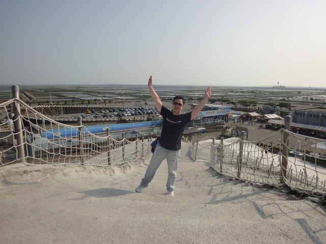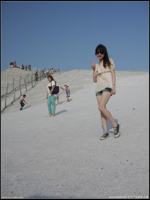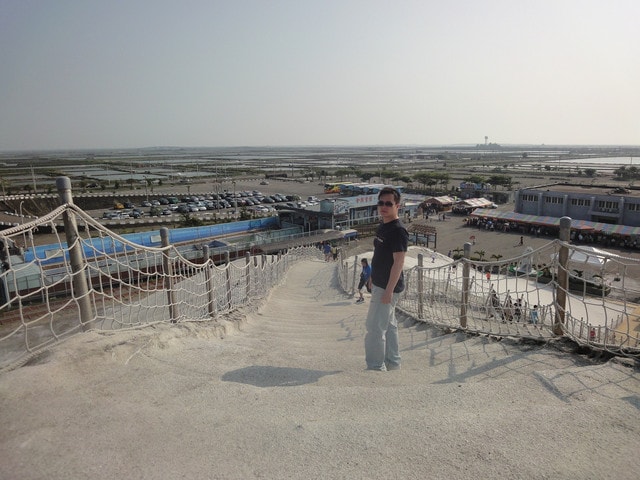 七股鹽場特別保留了一座鹽山,開放讓觀光客爬上爬下