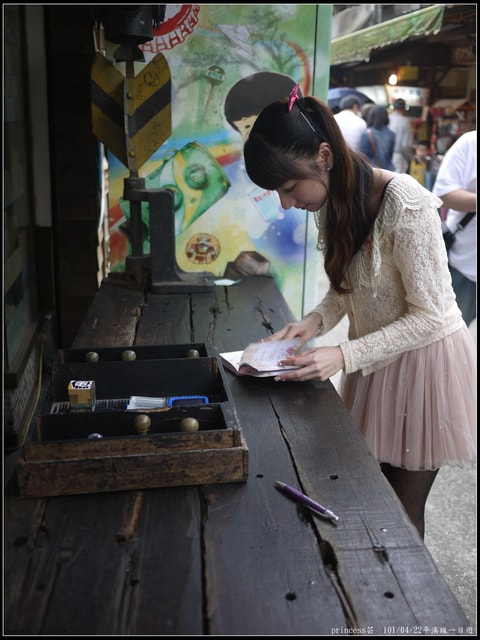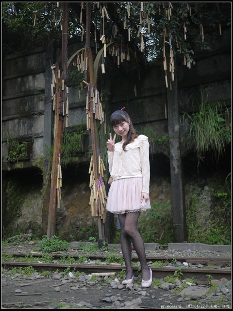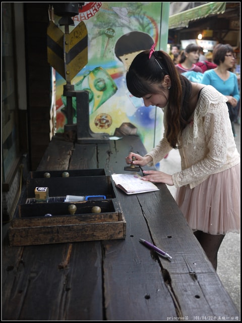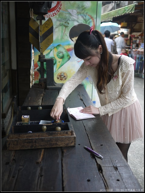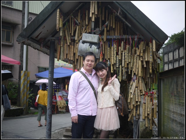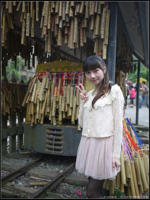 去年在菁桐車站前的祈福竹筒所拍的照片,只可惜實在是好模糊喔!