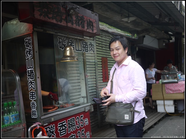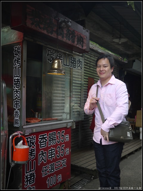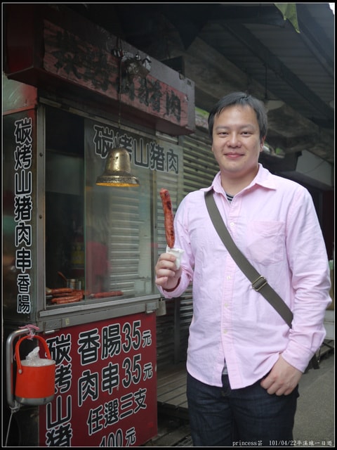 趁我在蓋印章時,小杰又跑到旁邊買 山豬肉香腸