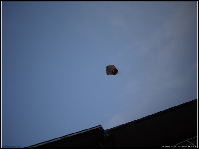 天燈已點好火冉冉昇起,但店家還是不急不徐的叫我們轉著拍天燈四面![]()