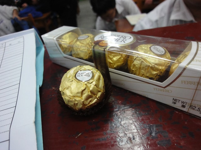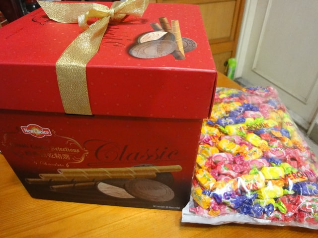 還有學生送的巧克力.糖果.班服和laptop一樣大的麵包……