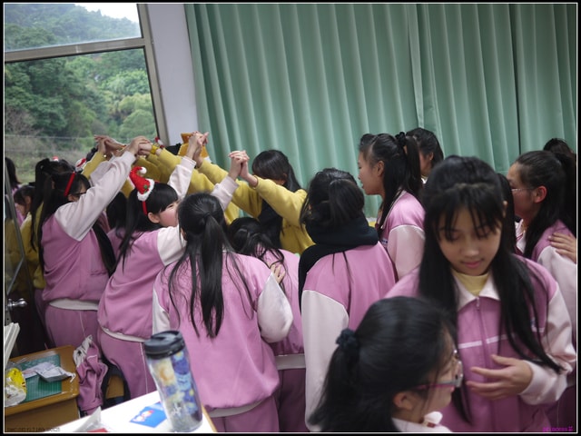 party結束時,學生很自動的幫學妹搭拱門配上Christmas songs目送學妹離開!