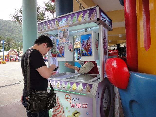 園區內,冰淇淋一球就70元,但小胖杰還是吃得很開心 (邊吃還邊說自己怎麼那麼胖
