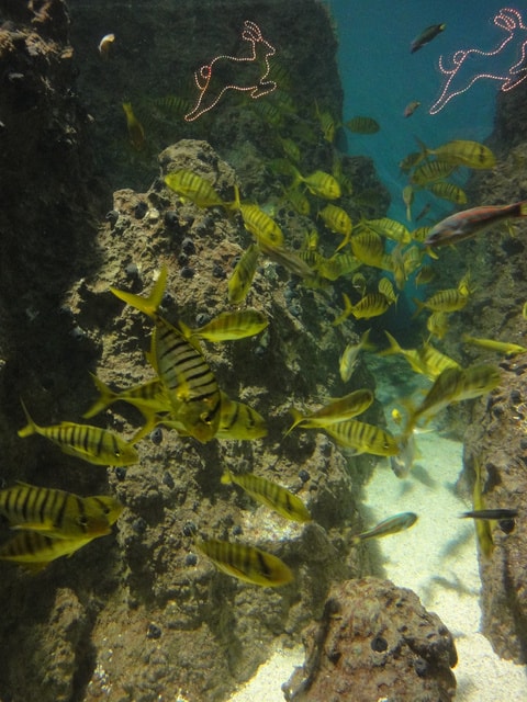 在燦爛繽紛的探險島水族館中.還可看到很特別的皮卡丘 (看旁邊資料介紹的