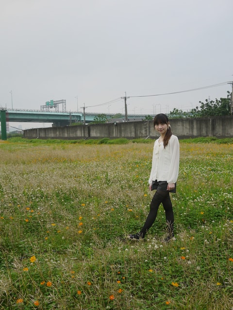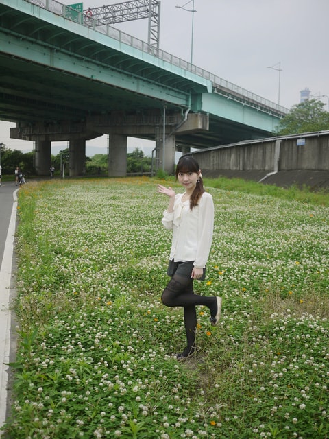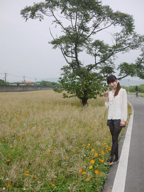 為了騎車方便,我特地換上了休閒短褲配上IRIS GIRL的雪坊紗上