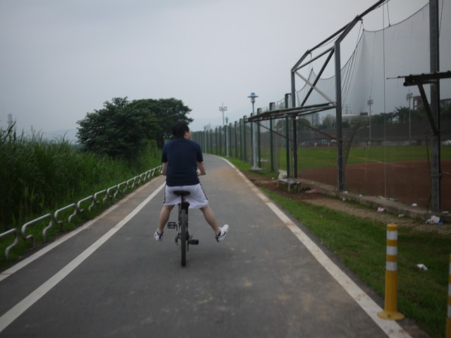 沿路上,還有類似自行車的競技步道,蠻多小朋友戴著安全帽和護具在此馳騁著鐵馬
