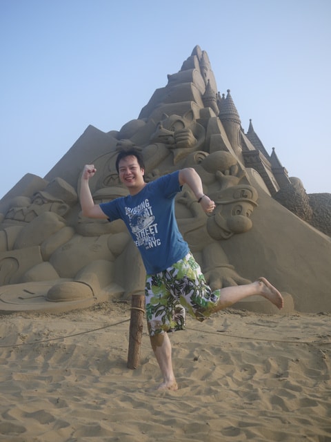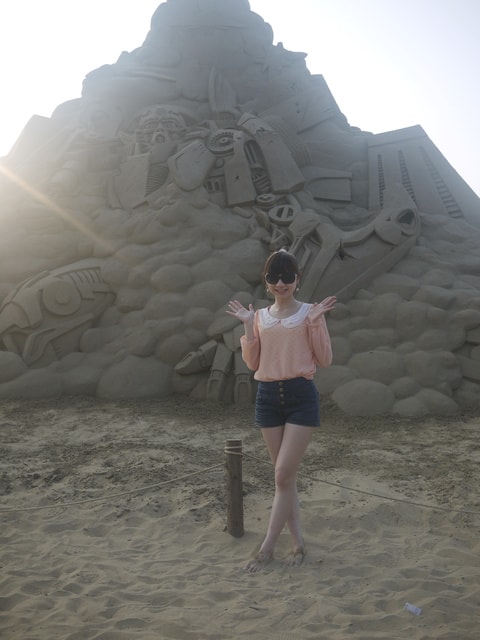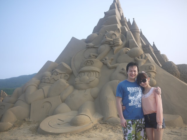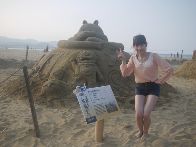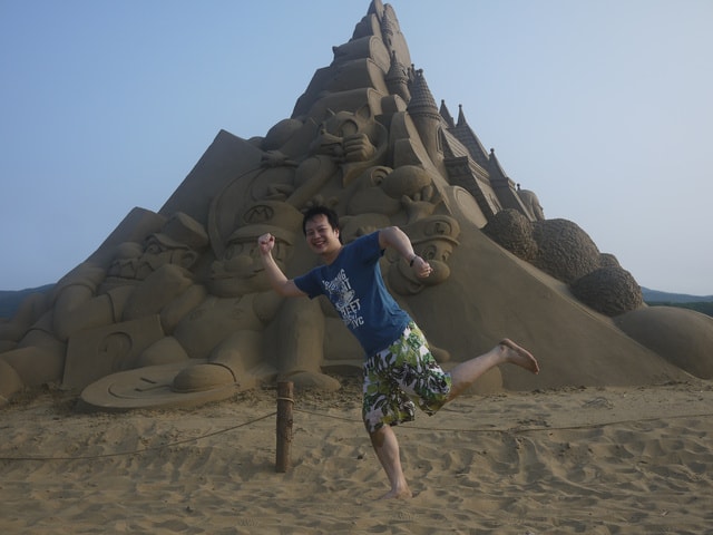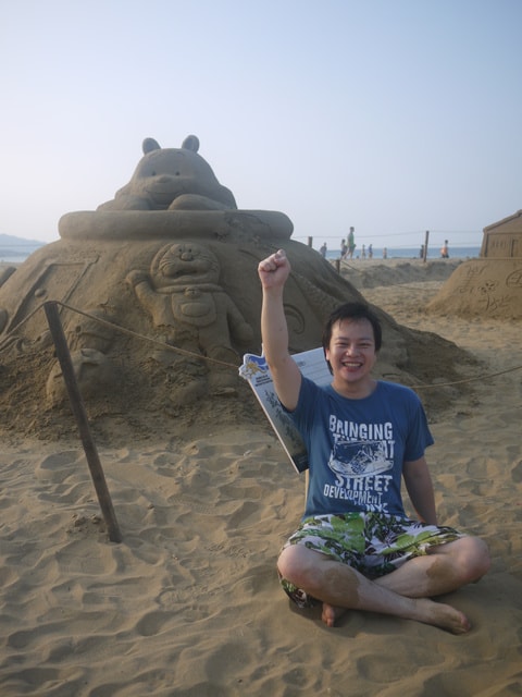 玩水玩到五點多,再來逛逛沙雕展順道曬衣服