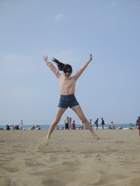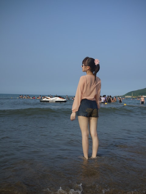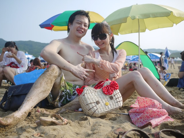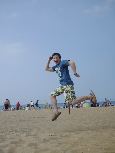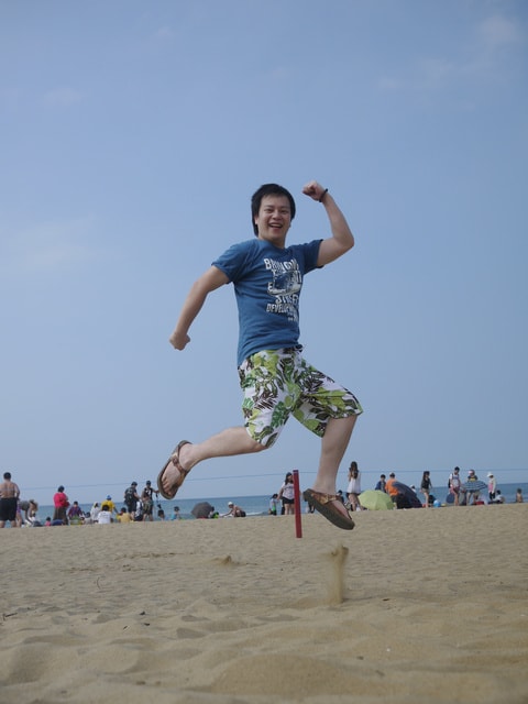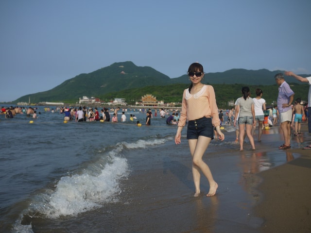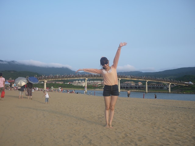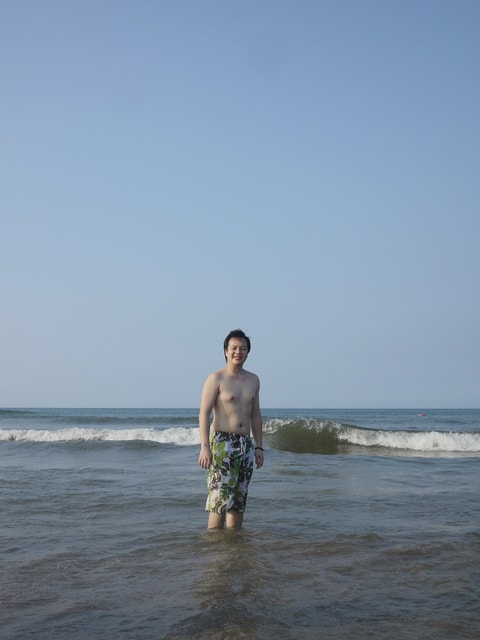 小杰一到福隆,立馬換上海灘褲準備下海好好玩一場啦!