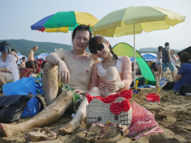 簡單看了一下沙雕展後,趁著陽光大水溫熱