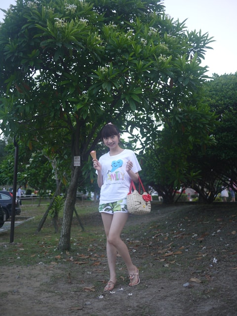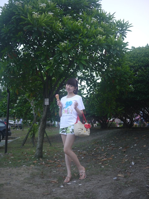 高腰的牛仔短褲讓腿看起來好像比長喔! (哪來的自信啊