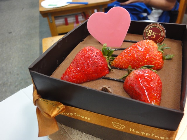 之後,也陸陸續續收到學生送的小蛋糕,但青一色都是巧克力蛋糕![]()