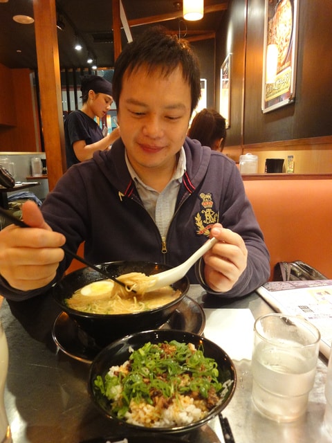 在等電影的同時,我們先在花月圓用餐,小杰還是一樣,飯配拉麵![]()