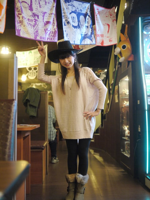 因為上衣很長,還可以當洋裝穿, 內搭件毛襪也很ok