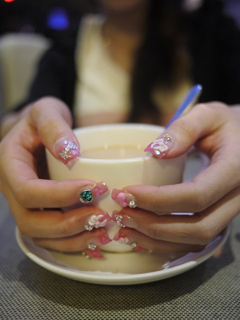 粉嫩的水晶指甲,彷彿告知世人春天的來到