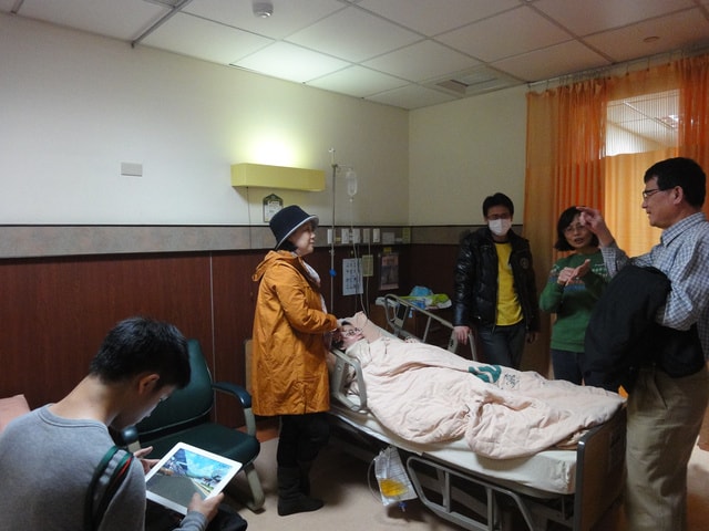 老姐住的是一人一室的頭等貴婦房,旁邊還有一張床供 我弟玩電腦 姊夫陪睡