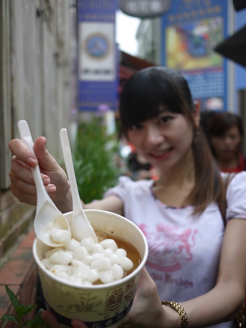 吃完飯後,又回到人擠人的南庄老街,準備來買桂花冰鎮湯圓