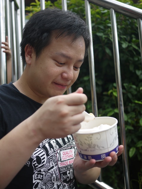 等了約10mins左右,友人終於幫我們把桂花冰鎮湯圓買到囉![]()