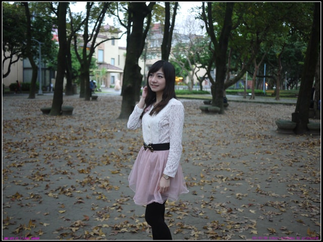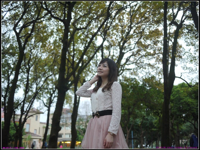 洋裝上美麗的玫瑰花襯映著蝴蝶結髮飾,彷彿徜徉在維多利亞的公主般 (哪來的自信啊