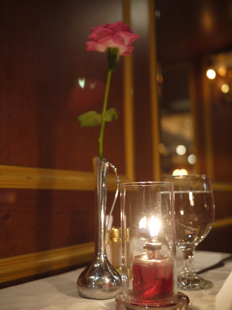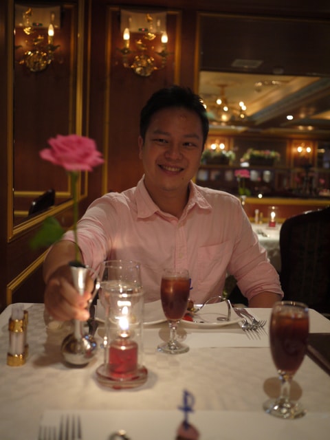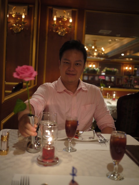 因為用餐當天剛好近情人節,所以每個餐桌上都有玫瑰花與蠟燭