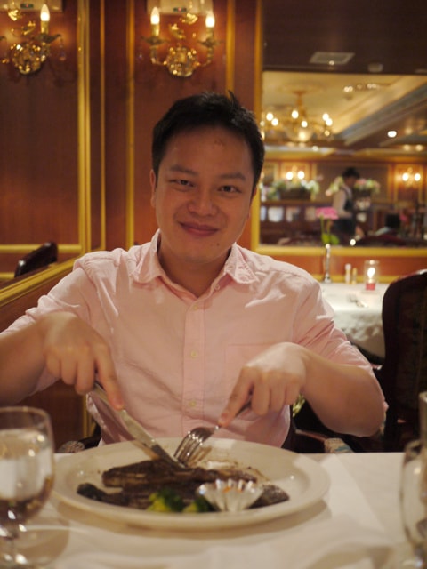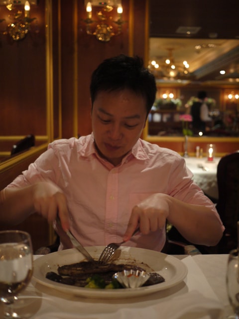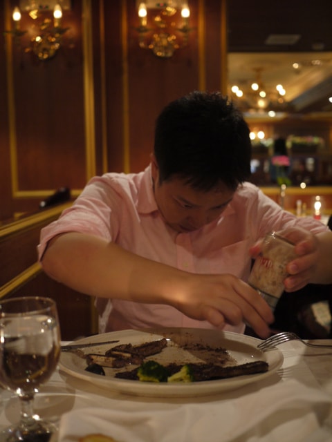 小杰吃得相當津津有味,一邊吃還開始一邊評論一堆牛排館