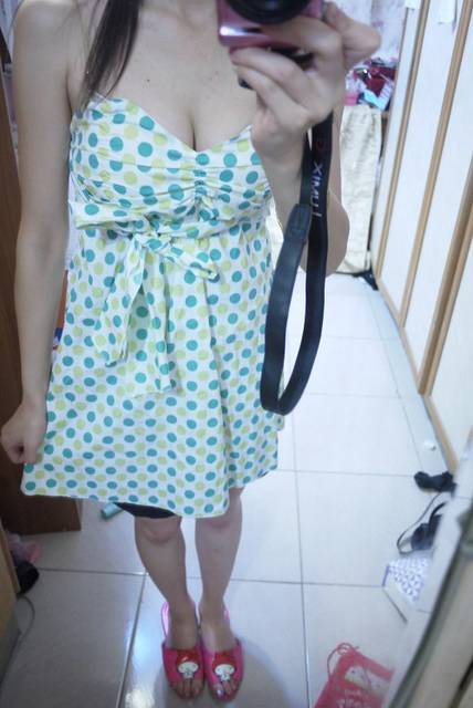 洋裝的質料相當薄, 所以即使濕了趕緊把水擠乾