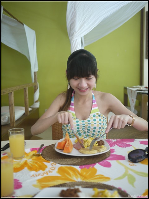 吃完早餐後直接要前往海邊玩水,乾脆就把泳衣穿在上衣裡面囉
