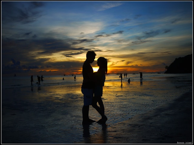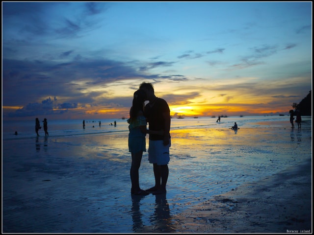 漸層絢麗的夕陽呼應著清澈透明的海水,彷彿像是幸福愛情的入口