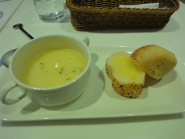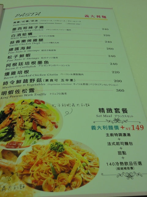 而我個人是覺得主餐很好吃,義大利麵分量夠大料也實在,法式麵包也很有特色
