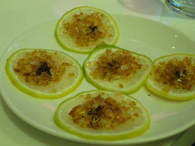 店員教我們把檸檬片對折吃下去,因為我不敢吃,所以就拜託同學幫我解決