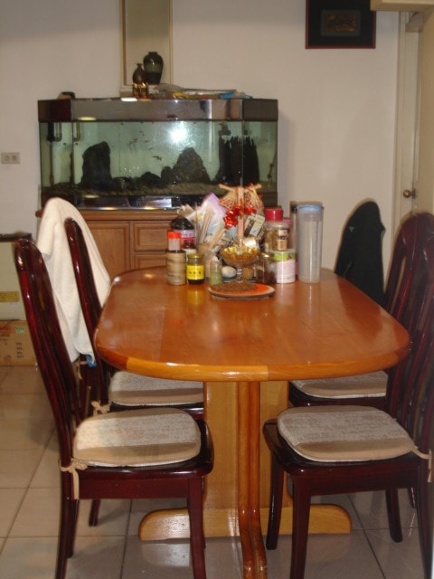 原本餐桌都是滿的ㄟ,可見我真的丟了許多東西…才能空得出這麼多位置![]()