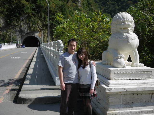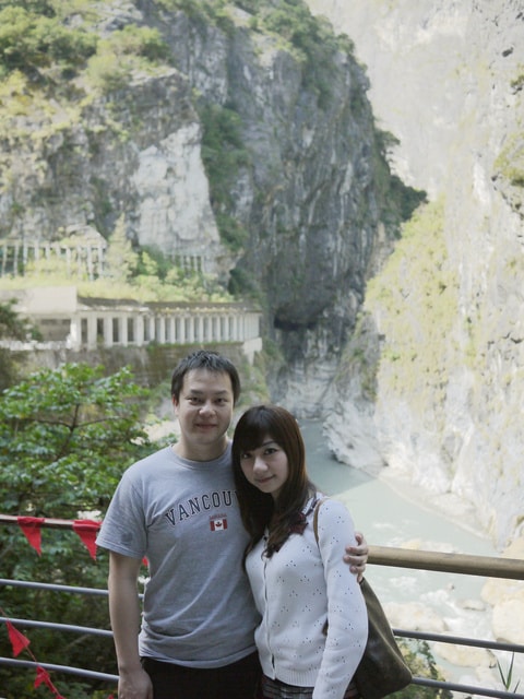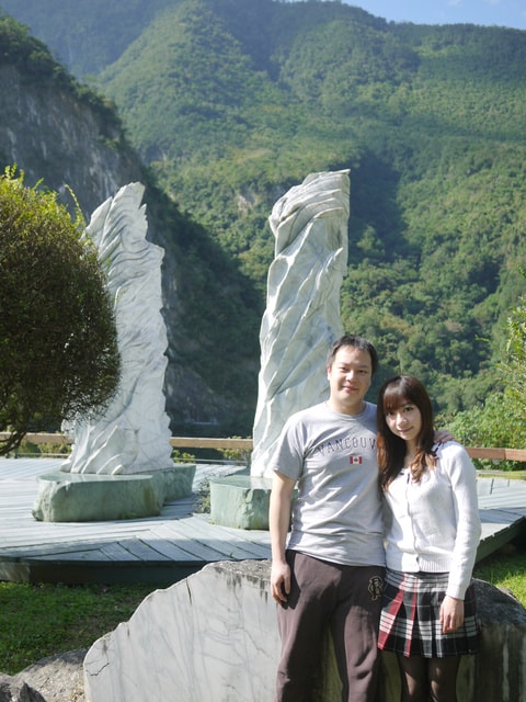 在天祥活動中心附近,我們發現了一道小瀑布,兩人就很開心的玩了起來!![]()