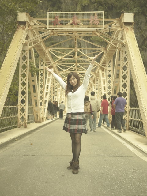 紅色的橋身在青山綠樹中更加顯眼,橋畔建有一座大理石涼亭,相傳原住民婦女思念外出未歸的孩子