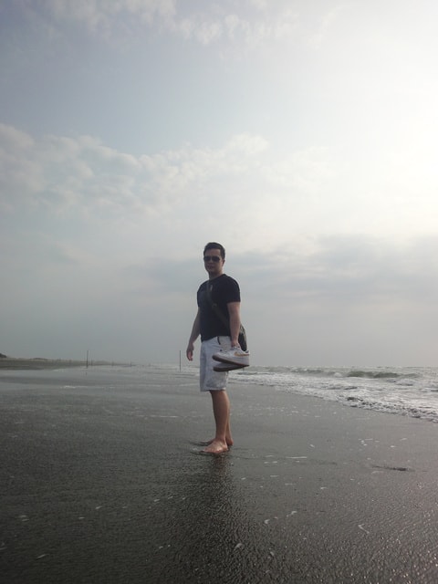 我們假日出去,他們雖貴為教授校長,還是穿著超隨興,跟著我們家去吃飯海釣