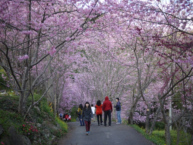 往拉拉山遊樂區再開個10 mins左右,路邊即可看到【櫻木花道】徒步區