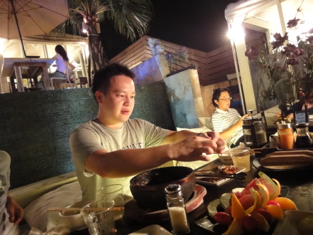 很認真的幫我撥蝦! ~ 因為燒烤哥撥的蝦最甜啦