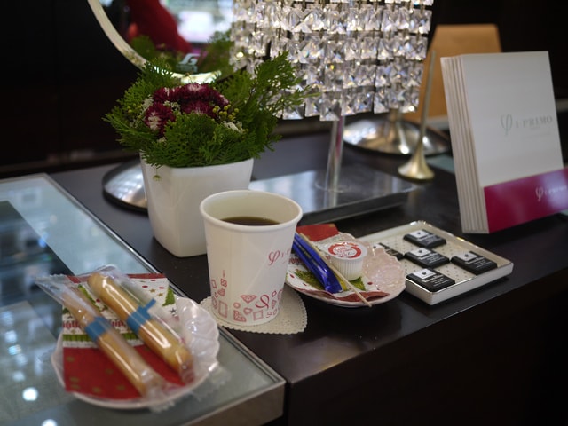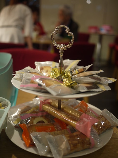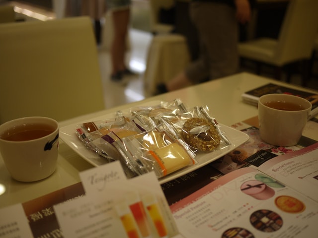 服務生幫我們倒了兩杯茶和一些小西點