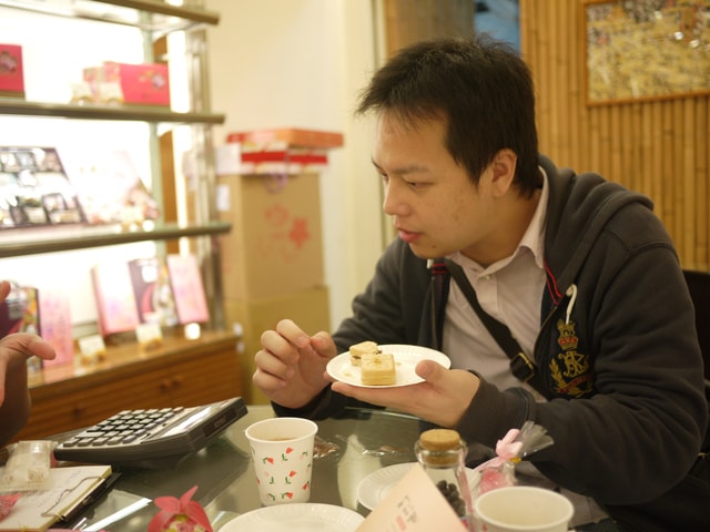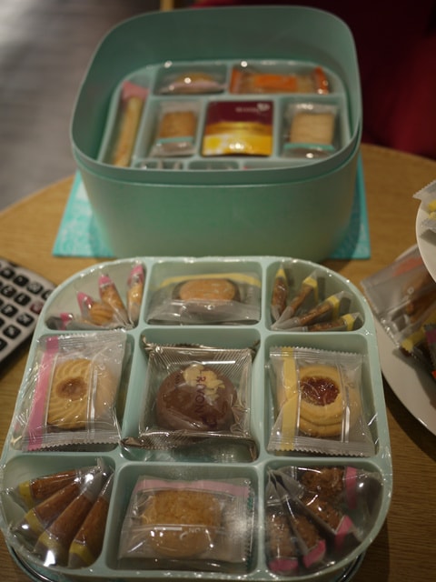 店家很貼心的準備各種口味的喜餅和茶水招待我們