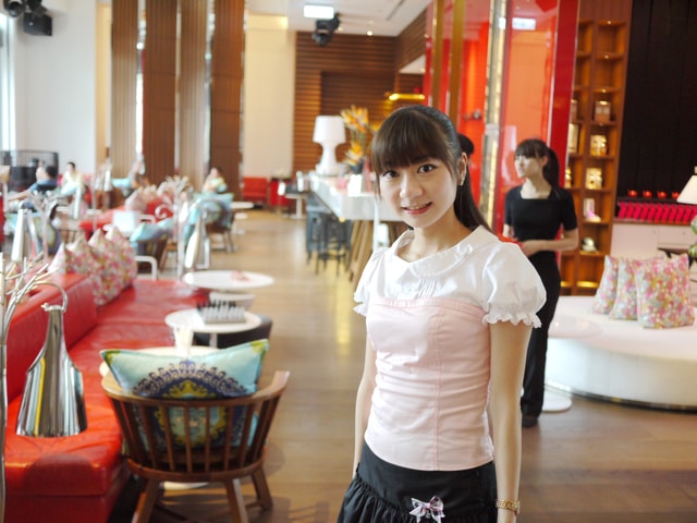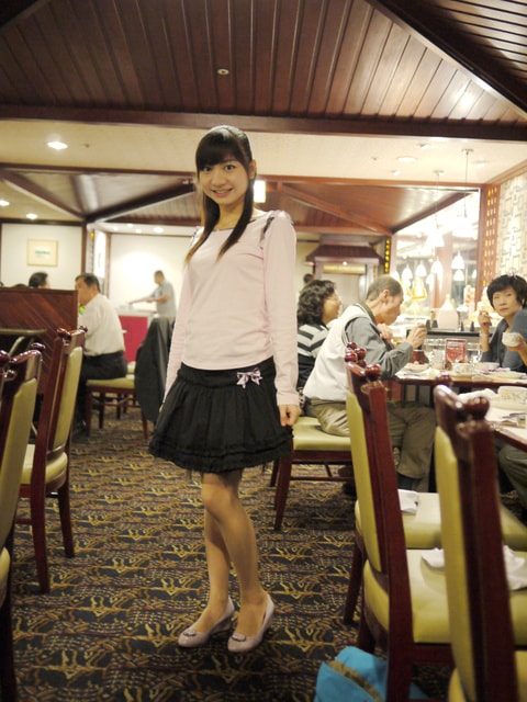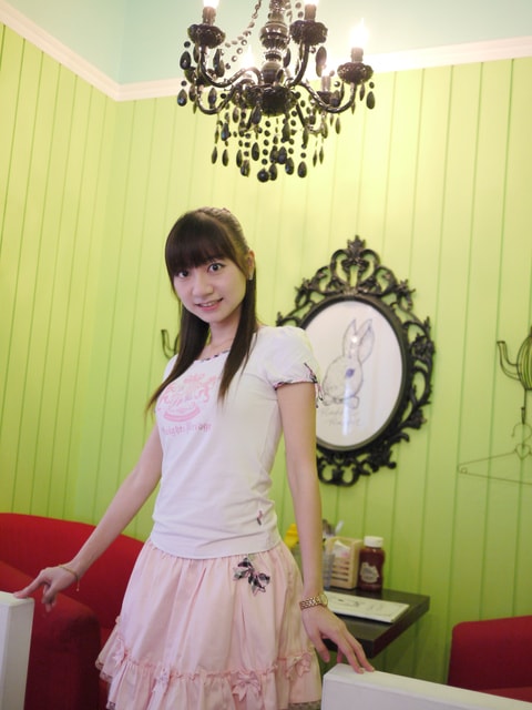 我也特地穿上此款黑色裙子配上粉色襯衫馬甲