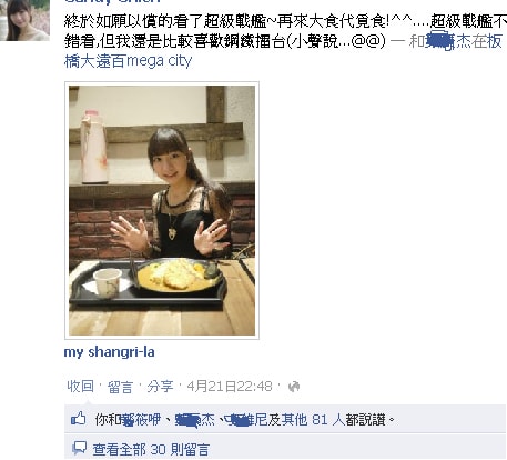 當天,馬上把心得po在facebook上和大家分享